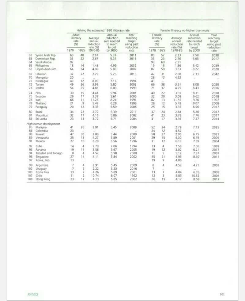 درصد بی سوادی بزرگسالان در سال ۱۹۷۰