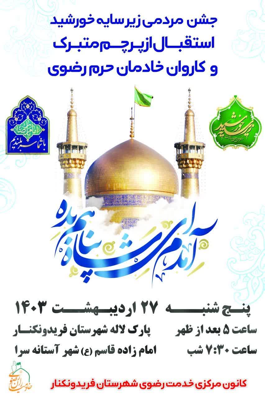 این جشن به میزبانی خادمیاران امام رضا (ع) در شهرستان فریدونکنار امروز پنجشنبه ۲۷ اردیبهشتماه از ساعت ۱۷ در پارک لاله شهرستان برگزار خواهد شد.