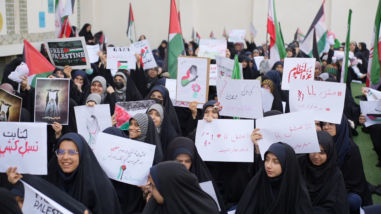 • اجتماع بزرگ دختران دانش آموز در حمایت از کودکان غزه در ساری برگزار شد.